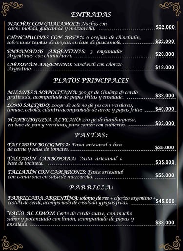 Fusión de sabores argentinos y colombianos en cada bocado, despierta tus sentidos con nosotros.