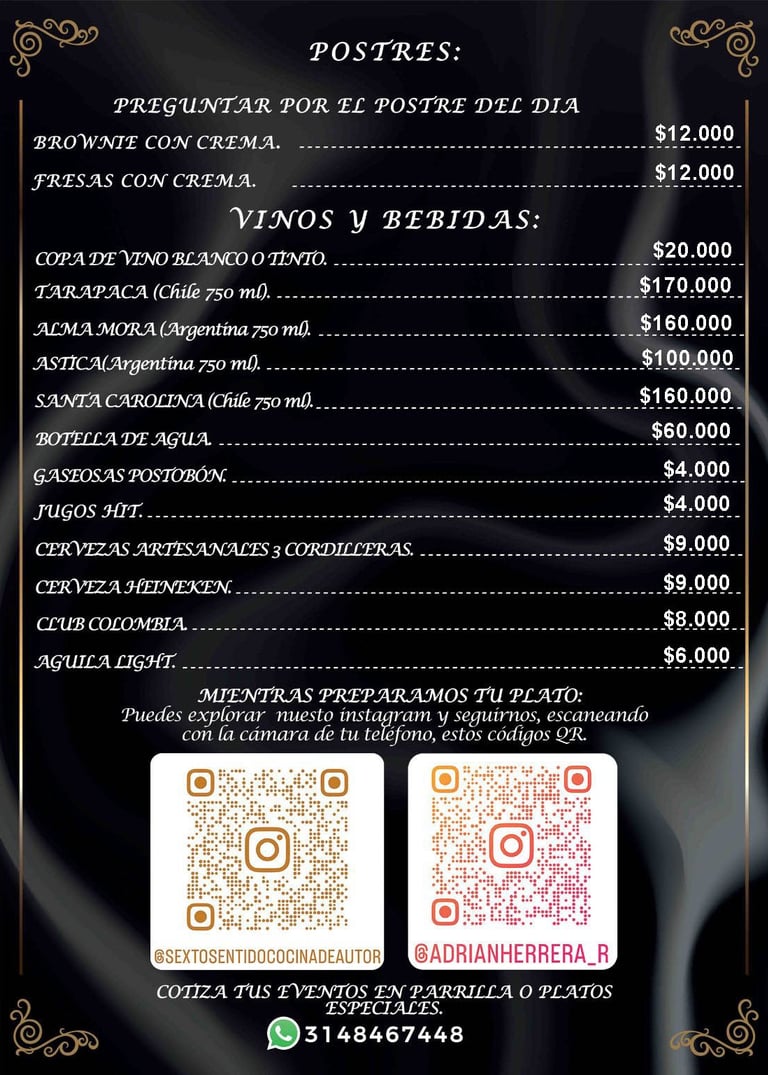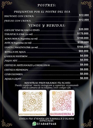 En Sexto Sentido, fusionamos la tradición del asado argentino con sabores colombianos, ofreciendo una experiencia gastronómica única que despierta tus sentidos a través de nuestra parrilla, pastas y mariscos frescos.
