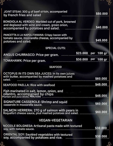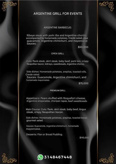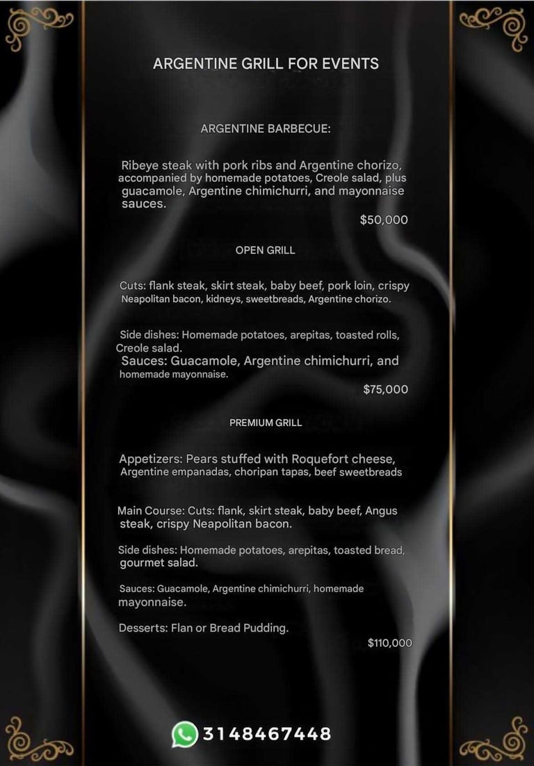 Enjoy a unique fusion of Argentine barbecue and Colombian flavors in every dish.