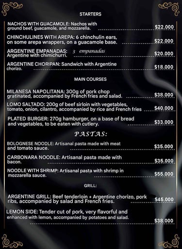 A fusion of Argentine and Colombian flavors in every bite. Awaken your senses with us.